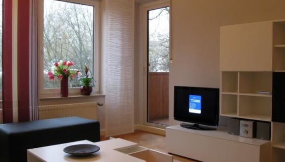 Das Apartment besteht aus einer Diele mit Garderobe, einem Schlafzimmer, einem Wohnzimmer mit Schlafcouch und geräumigen Essbereich für vier Personen, einer vollständig eingerichteten Küche mit zusätzlicher Essecke sowie einem Badezimmer mit Badewanne / Dusche und WC. Ausserdem ist ein kleiner Balkon mit Blickrichtung Pegnitz vorhanden. Das Apartment kann auch von Allergikern genutzt werden. Die Matratzen, die Kopfkissen sowie die Zudecken wurden entsprechend ausgewählt. Bitte beachten Sie, dass in der Wohnung nicht geraucht wird. Auch Haustiere sind nicht gestattet. Dem Gast stehen in Summe 54 m² zur Verfügung.