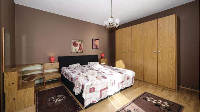 Die Ferienwohnung umfasst drei Schlafzimmer, ein Wohnzimmer und ein Badezimmer mit Dusche. Die voll ausgestattete Küche ermöglicht eine eigenständige Zubereitung von Speisen.