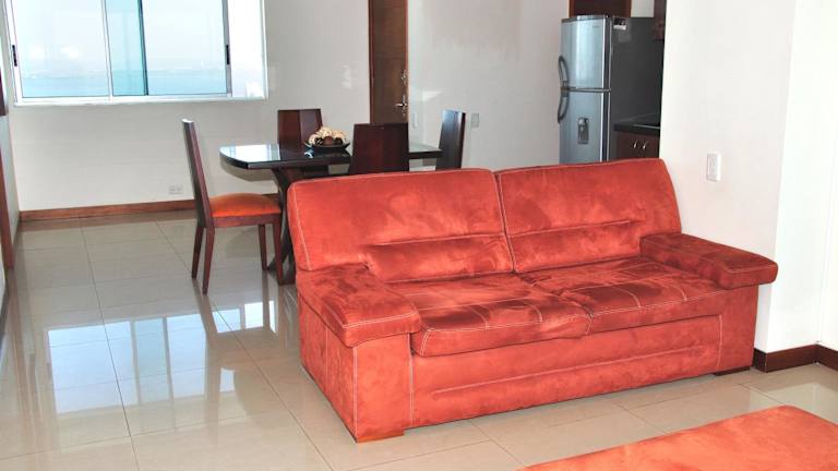 Die klimatisierten Apartments im Palmeto Cartagena bieten einen herrlichen Meerblick von ihrem eigenen Balkon aus. Jedes Apartment ist mit einem Flachbild-Kabel-TV, dunklen Holzmöbeln und einer voll ausgestatteten Küche mit Kühlschrank und Geschirrspüler ausgestattet. Die Bäder sind mit einer Dusche und dekorativen Fliesenarbeiten ausgestattet. Komfortable, hellrote Sofas runden das gemütliche Ambiente ab.
