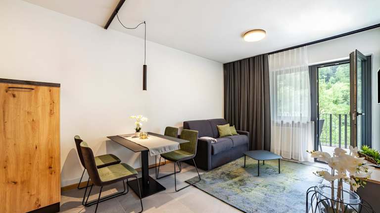 Jedes Apartment ist mit einer Terrasse ausgestattet, die einen Blick auf die Berge bietet. Zur Ausstattung gehören ein Satelliten-TV, eine gut ausgestattete Küche mit Kühlschrank, Geschirrspüler und Ofen sowie eine Kaffeemaschine und ein Wasserkocher. Das eigene Badezimmer ist mit einer Dusche, kostenlosen Pflegeprodukten und einem Haartrockner ausgestattet.