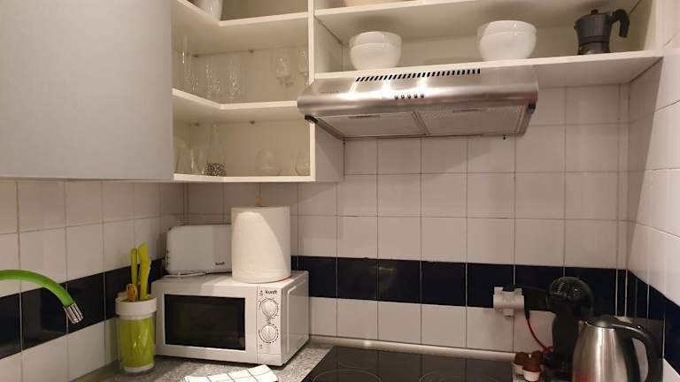 Die Ferienwohnung ist klimatisiert und umfasst ein Schlafzimmer sowie Kabel Flachbild-TV und einen Essbereich. Zur Ausstattung gehören eine Küche mit Kühlschrank und ein Wohnzimmer. Handtücher sowie Bettwäsche werden bereitgestellt. In der Unterkunft sind Nichtraucherzimmer vorhanden. Ein Babybett kann für Kleinkinder bis 3 Jahre bereitgestellt werden.