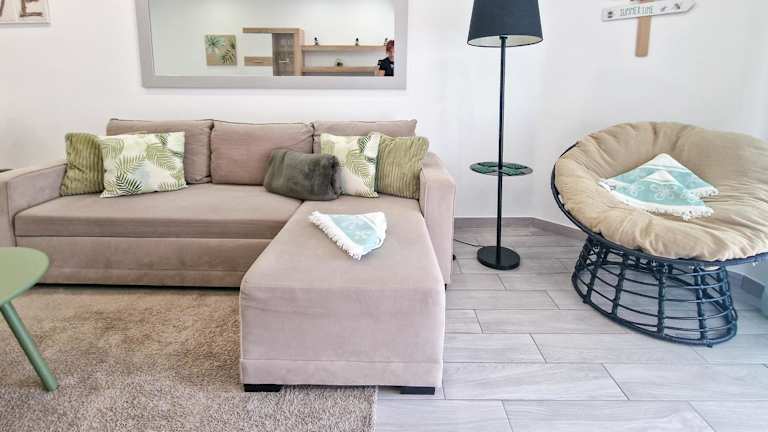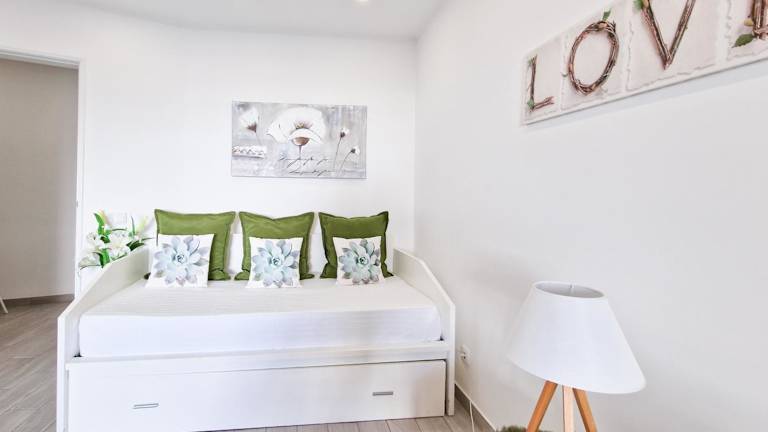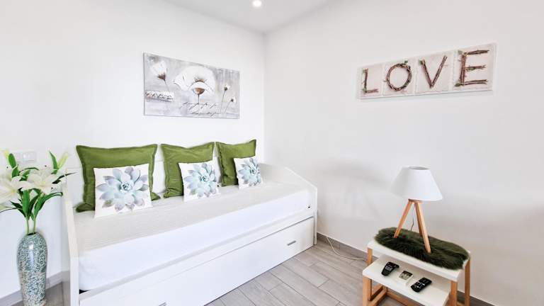 Die Ferienwohnung besteht aus einem Schlafzimmer, einem Wohnzimmer und einem Badezimmer, das mit einer Dusche und einem Haartrockner ausgestattet ist. Handtücher und Bettwäsche werden zur Verfügung gestellt.