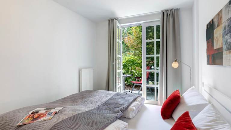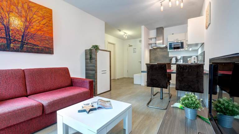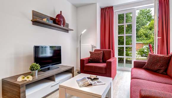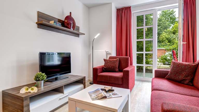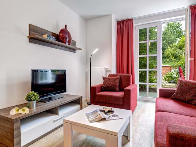 Das Apartment 44 der Residenz am Balmer See befindet sich im Erdgeschoss und bietet Ihnen ein separates Schlafzimmer sowie einen gemütlichen Wohnbereich mit einem Flachbild-TV. Die Küche ist komplett ausgestattet mit einem Geschirrspüler, einer Mikrowelle, einer Kaffeemaschine und Küchenutensilien. Bettwäsche und Handtücher werden gestellt und eine münzbetriebene Waschmaschine und ein Wäschetrockner stehen ebenfalls zur Verfügung.