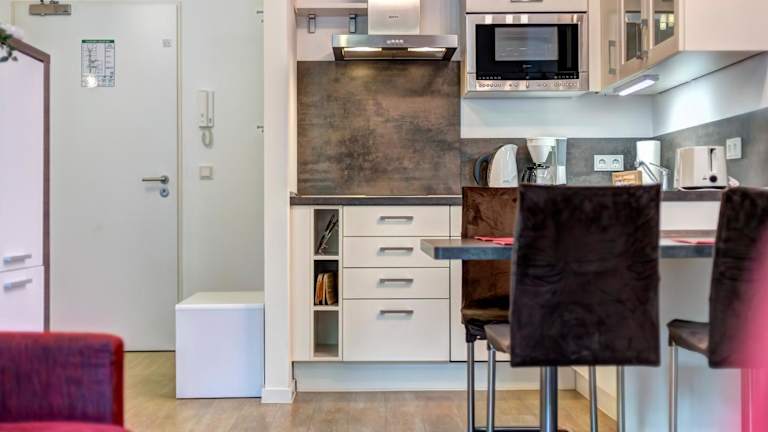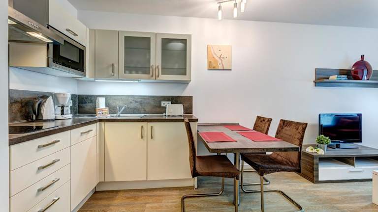 In der voll ausgestatteten Küche des Apartments haben Sie die Möglichkeit, Ihre eigenen Mahlzeiten zuzubereiten und gemütlich im Essbereich zu speisen. Alternativ können Sie in einem der Restaurants in der Umgebung traditionelle Gerichte und lokale Spezialitäten genießen.