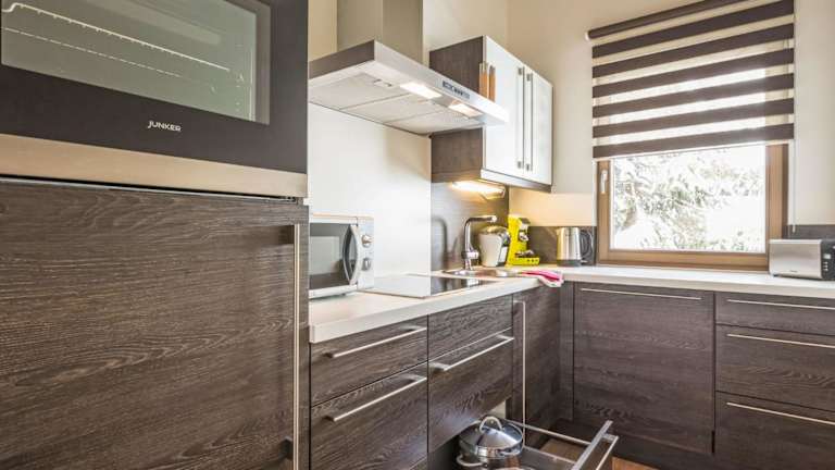 Die Unterkunft verfügt über eine Ferienwohnung mit zwei Schlafzimmern, einem Wohnzimmer und einer gut ausgestatteten Küche, die unter anderem einen Kühlschrank und einen Geschirrspüler umfasst. Ein Flachbild-TV und ein Badezimmer mit Dusche sind ebenfalls Teil der Ausstattung. Von der Terrasse aus genießen die Gäste Bergblick.