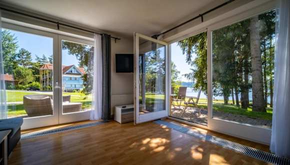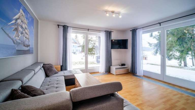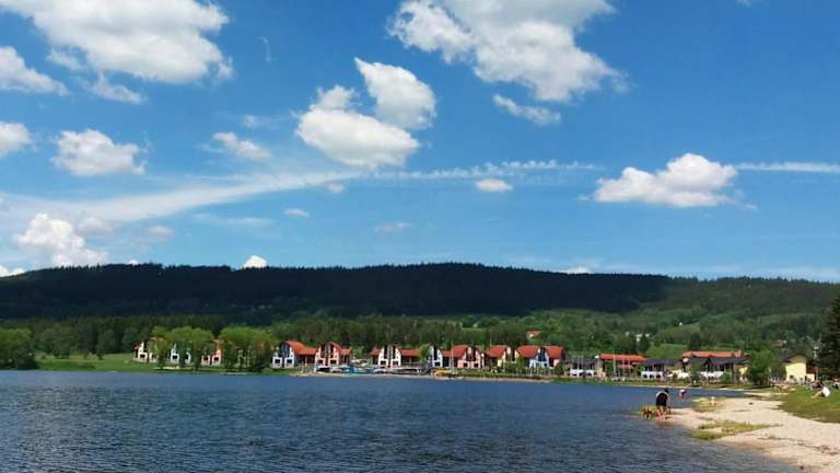 Die Unterkunft befindet sich in Lipno nad Vltavou, 33 km von Schloss Krumau entfernt, und liegt direkt am Strand. Die Umgebung bietet vielfältige Möglichkeiten zum Skifahren und Fahrradfahren.
