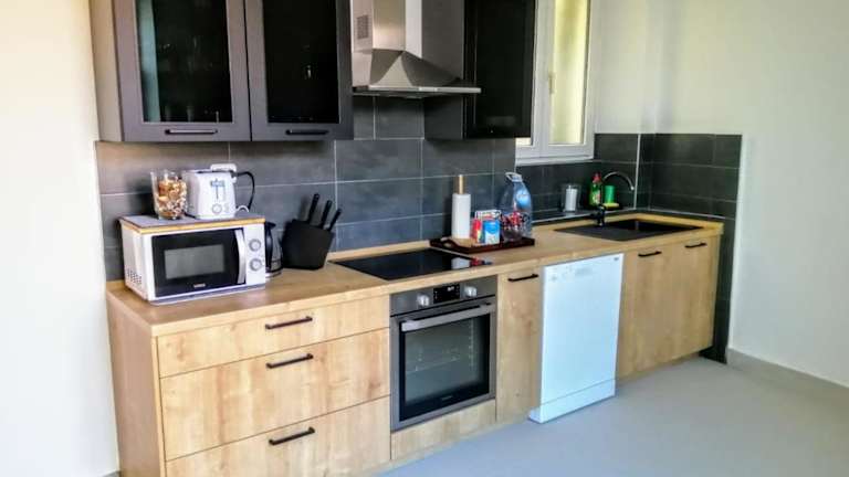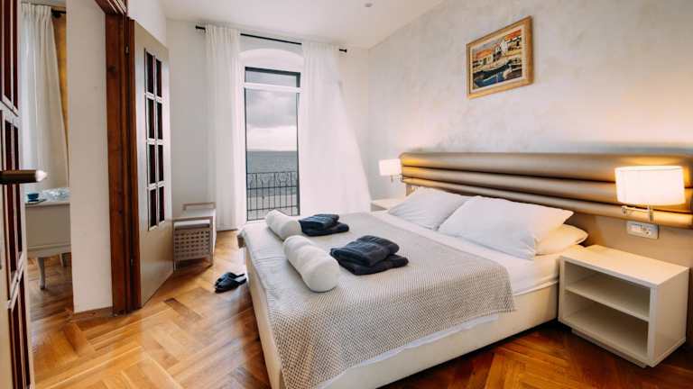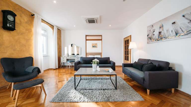 Über die Verwaltung wird nur diese einzige Wohnung in diesem Haus vermietet. Das Apartment Sea View Obala Trumbica hat drei Schlafzimmer, ein großes Wohnzimmer, ein Gästeklo, ein Badezimmer und verfügt über eine große Küche. Wenn man von außen auf das Haus schaut, kann man sich nicht vorstellen, dass es innen so geräumig ist. Der Zustand ist als modern zu beschreiben aber es gibt teilweise sehr abgenutzte Stellen und die Sauberkeit ist mancherorts nicht so super! WiFi war nicht schnell aber…