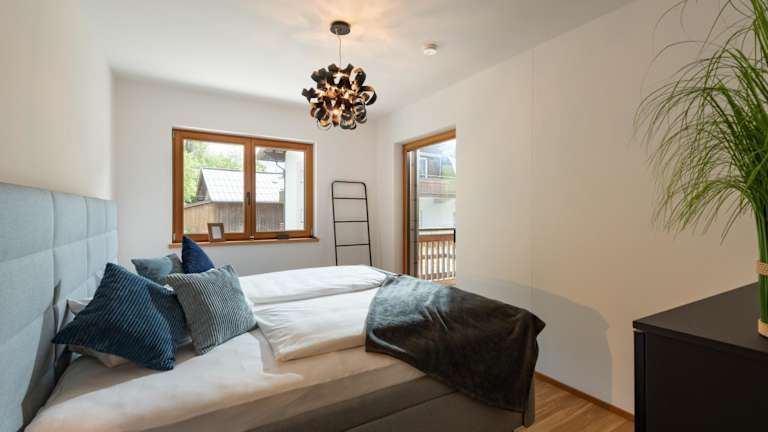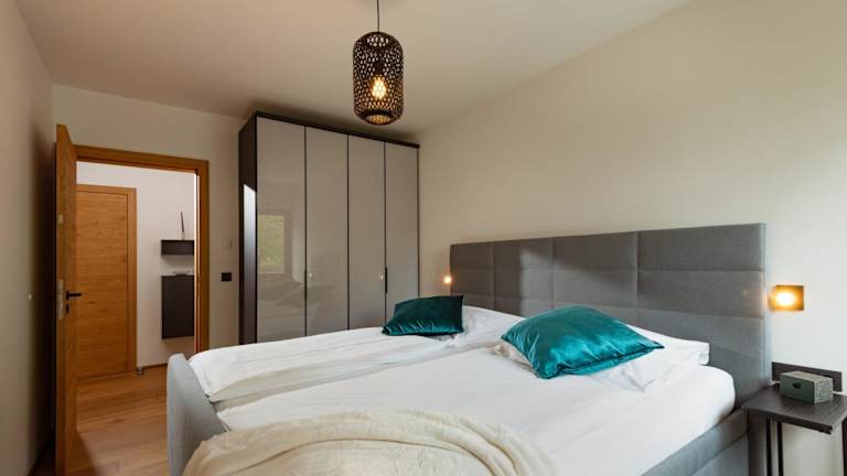 Die Ferienwohnung bietet zwei Schlafzimmer, ein Wohnzimmer mit Flachbild-TV, eine gut ausgestattete Küche mit Kühlschrank und Geschirrspüler, sowie ein Badezimmer mit Dusche. Das Apartment verfügt außerdem über einen Balkon mit Aussicht auf die Berge.