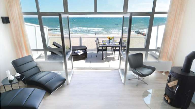 Das Appartement Seestern A ist eine moderne Ferienwohnung mit Balkon, die Meerblick bietet und über eine Terrasse verfügt.