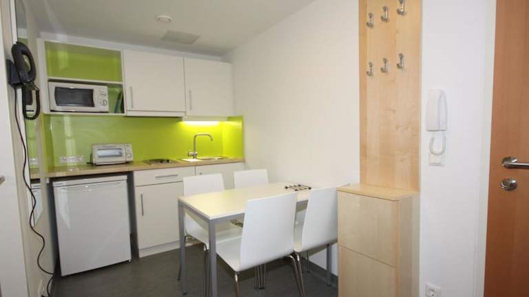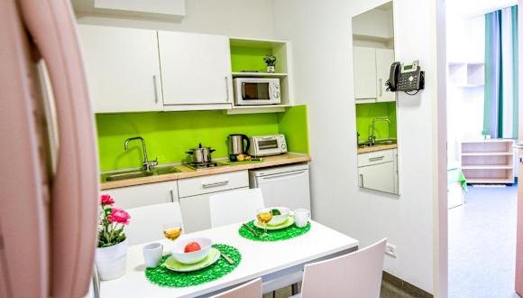 Die Wohnungen sind mit einem Wohnzimmer ausgestattet, das einen TV mit Satellitenkanälen bietet. Die Küchen sind komplett ausgestattet und beinhalten moderne Geräte. Es stehen 2 Schlafzimmer und 1 Badezimmer zur Verfügung.