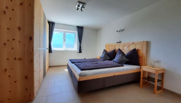 Die Ferienwohnung im 1. Obergeschoss bietet neben einer großzügigen Wohnküche, ausgestattet mit einer voll eingerichteten Küche, einer Bar mit Kaffeemaschine, einem Sofa mit TV und einem separaten Essbereich im Wintergarten noch 2 Schlafzimmer in Zirbe mit Berg- oder Gartenblick für einen rundum erholsamen Urlaub. Vom Wohnzimmer aus kommt man auf die große Terrasse mit gemütlicher Sitzgelegenheit, von wo man den herrlichen Ausblick genießen kann. Im geräumigen Bad mit Dusche und WC finden unsere Gäste einen Fön und genügend Handtücher für die Dauer des Aufenthaltes. Im Eingangsbereich befindet sich die Leseecke, dort gibt es für Jung und Alt verschiedene Spiele und Bücher zur freien Verwendung. Auch Babys und Kleinkinder sind herzlich willkommen, sowohl ein Gitterbett, als auch ein Hochstuhl sind vorhanden. Weiters verfügt die Unterkunft über einen überdachten Parkplatz und noch weiteren im Freien. Auch kostenloses WLan steht in der gesamten Wohnung zur Verfügung.