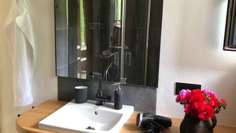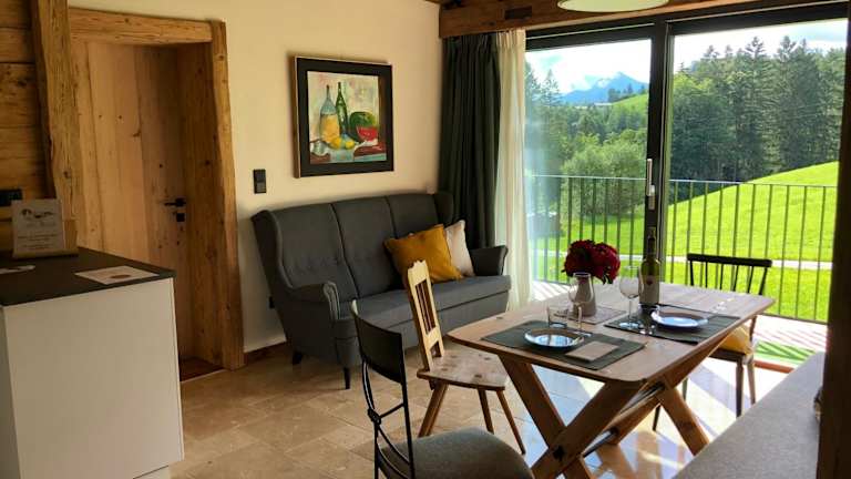 Die Ferienwohnung verfügt über ein Schlafzimmer, ein Badezimmer, Bettwäsche und Handtücher. Zur Ausstattung gehören ein Flachbild-TV mit Satellitenkanälen, ein Essbereich, eine voll ausgestattete Küche sowie ein Balkon mit Blick auf die Berge.