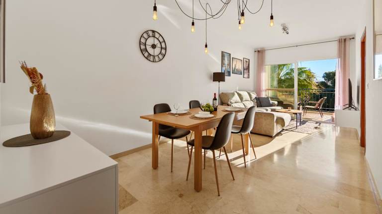Das klimatisierte Apartment Summer Vibes Miraflores - La Cala de Mijas bietet Platz für bis zu vier Personen und verfügt über zwei separate Schlafzimmer, die für Privatsphäre sorgen. Das Wohnzimmer ist gemütlich eingerichtet und mit einem Flachbild-TV ausgestattet. Die voll ausgestattete Küche ermöglicht es Ihnen, Ihre eigenen Mahlzeiten zuzubereiten und den Urlaub nach Ihren Wünschen zu gestalten. Zwei Badezimmer sorgen für zusätzlichen Komfort.