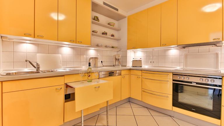 Die Unterkunft bietet ein Restaurant, in dem Gäste speisen können. Zudem ist die Küche der Wohnung vollständig ausgestattet, was die Selbstverpflegung ermöglicht.