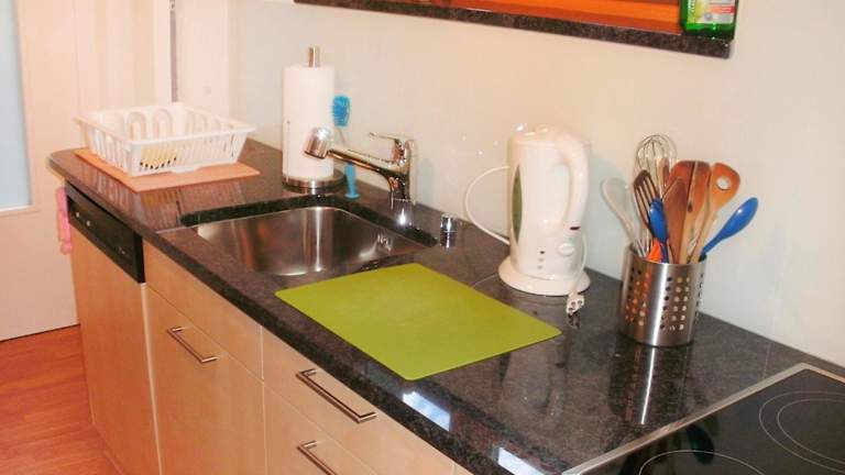 Die Ferienwohnung verfügt über zwei Schlafzimmer, ein Wohnzimmer mit TV und Satellitenkanälen sowie eine gut ausgestattete Küche mit Kühlschrank und Geschirrspüler. Ein Badezimmer mit Dusche ergänzt die Ausstattung. Bettwäsche, Handtücher und Wäsche werden gemäß den Richtlinien der örtlichen Behörden gewaschen.