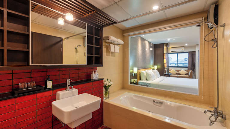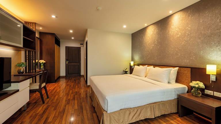 Die Zimmer im Hotel The Grand Napat sind in neutralen Farben gehalten und mit Holzmöbeln eingerichtet. Sie sind klimatisiert und verfügen über einen Flachbild-TV und ein gemütliches Sofa. Ausgewählte Apartments bieten zudem eine praktische Küchenzeile und eine entspannende Badewanne. Die Zimmer bieten den Gästen einen komfortablen Rückzugsort nach einem erlebnisreichen Tag in Chiang Mai.