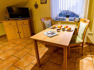 In der gut ausgestatteten Küchenzeile des Apartments stehen ein Kühlschrank sowie ein Geschirrspüler zur Verfügung, die eine Selbstversorgung ermöglichen. Es sind keine weiteren Verpflegungsmöglichkeiten angegeben.