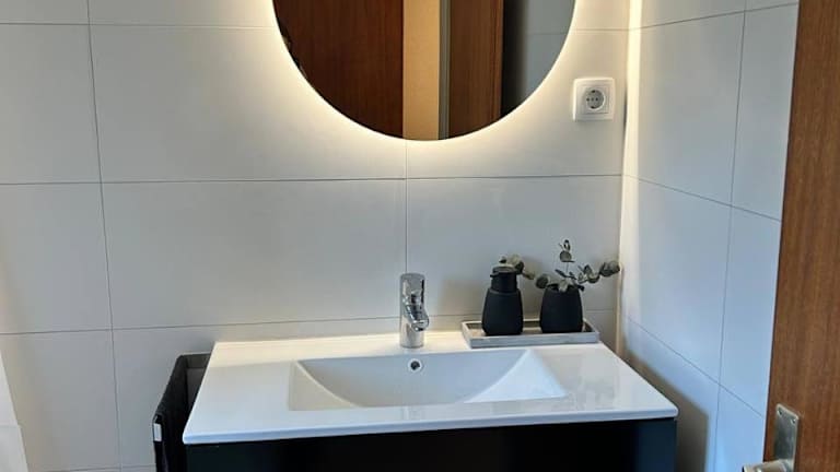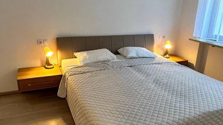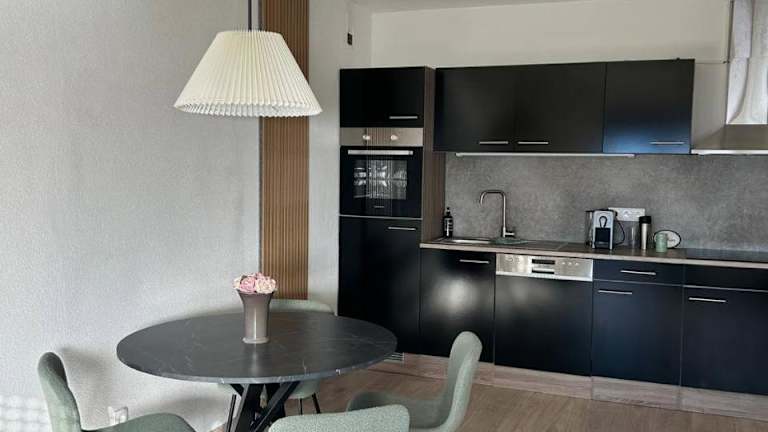 Die Ferienwohnung verfügt über ein Schlafzimmer, ein Wohnzimmer und eine gut ausgestattete Küche, die einen Kühlschrank und einen Geschirrspüler beinhaltet. Handtücher und Bettwäsche werden bereitgestellt.