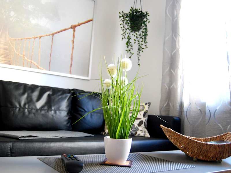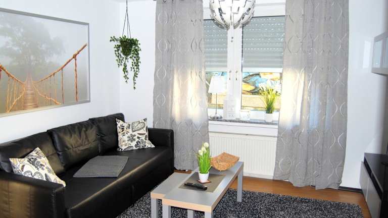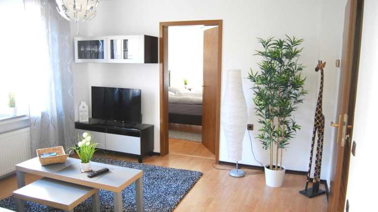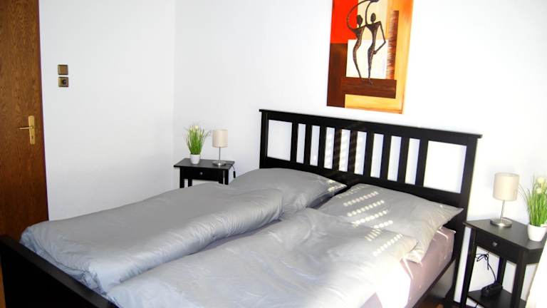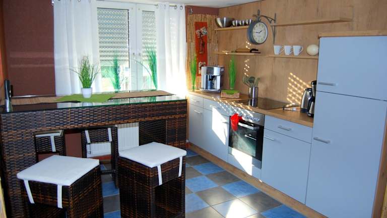 Die Ferienwohnung besteht aus einem Schlafzimmer, einem Wohnzimmer, einer voll ausgestatteten Küche mit Kühlschrank und Kaffeemaschine sowie einem Badezimmer mit Dusche und Haartrockner. Handtücher und Bettwäsche werden bereitgestellt.