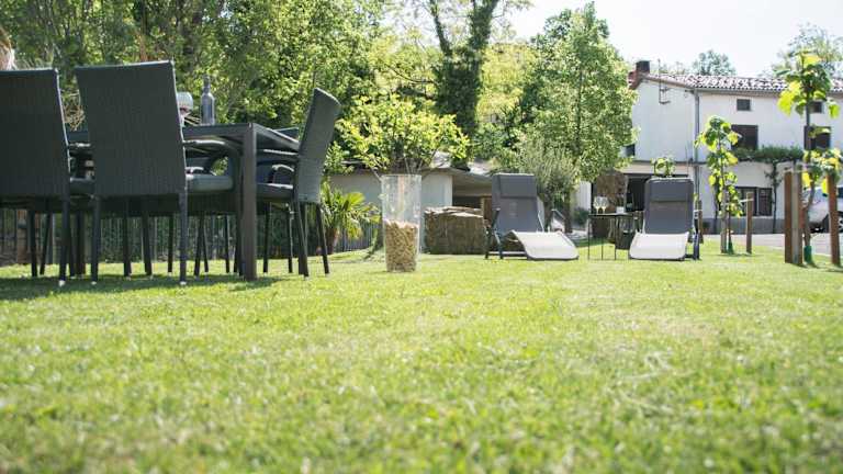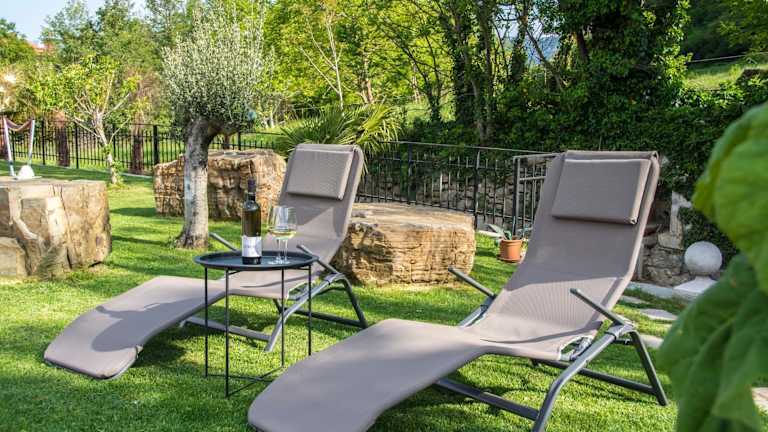 Nach einem aktiven Tag beim Wandern oder Fahrradfahren können die Gäste im Garten oder in der Gemeinschaftslounge entspannen. Keine weiteren Sport- oder Freizeitangebote sind angegeben.