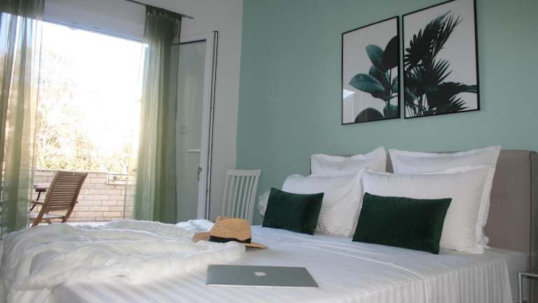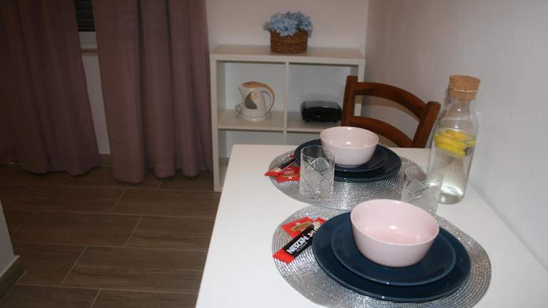 Die Studios und Apartments der Villa Marinesa sind in hellen Farbtönen gehalten und bieten eine angenehme Atmosphäre. Jede Unterkunft ist mit einer Küchenzeile und einem eigenen Balkon ausgestattet, auf dem Sie den Blick auf die Umgebung genießen können. Zur Ausstattung gehören auch ein TV und ein Esstisch auf dem Balkon. Die klimatisierten Zimmer sorgen auch an warmen Tagen für angenehme Temperaturen.