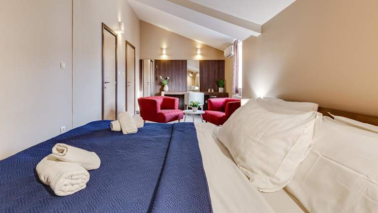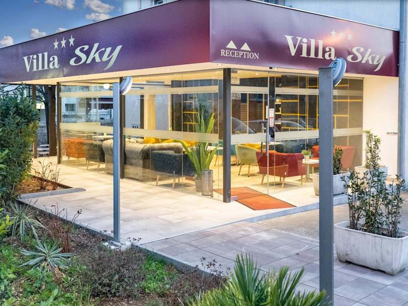 Das Hotel Sky liegt in einer ruhigen Wohngegend von Zadar, nur 2 km vom lebhaften Stadtzentrum entfernt. In der Nähe befinden sich ein Kies- und ein gepflasterter Strand, die etwa 1 km entfernt sind. Der nächste Supermarkt ist nur 190 m von der Unterkunft entfernt. Das Zentrum von Zadar bietet eine Vielzahl von Restaurants, in denen Sie lokale Spezialitäten probieren können. Der Bahnhof, der Busbahnhof und der Fährhafen befinden sich ebenfalls im Zentrum und sind bequem zu erreichen.