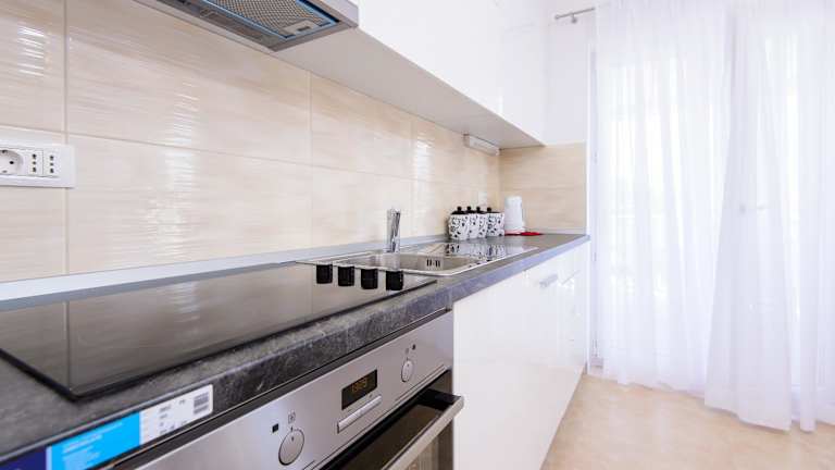 Die Ferienwohnung verfügt über zwei Schlafzimmer und ein Badezimmer. Zur Ausstattung gehören Bettwäsche, Handtücher, ein Flachbild-TV mit Satellitenkanälen, ein Essbereich sowie eine vollständig ausgestattete Küche. Eine Terrasse mit Stadtblick ist ebenfalls vorhanden. Schallisolierte Zimmer sorgen für zusätzlichen Komfort.