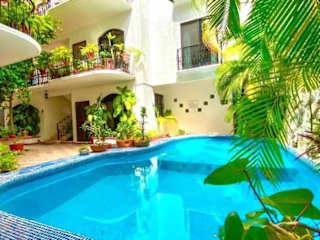 Das Apartment ist im mexikanischen Kolonialstil gestaltet und bietet eine klimatisierte Übernachtungsmöglichkeit mit einem Balkon, einem Außenpool und einem Garten. Zudem stehen den Gästen kostenlose WLAN-Nutzung und ein Privatparkplatz zur Verfügung.
