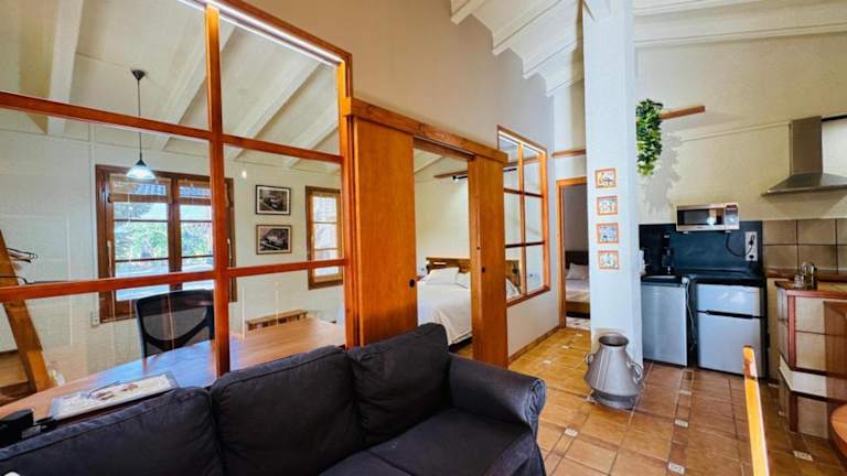 Das Apartment verfügt über eine voll ausgestattete Küche, so dass Sie Ihre eigenen Mahlzeiten zubereiten können. Alternativ stehen Ihnen auch Grillmöglichkeiten im Garten zur Verfügung.