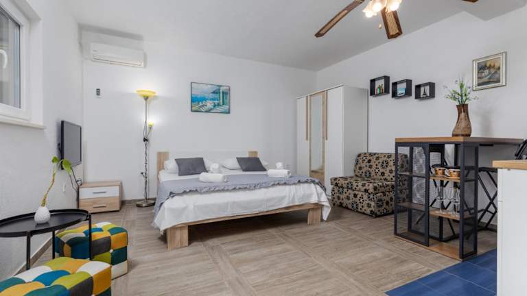 Das Apartment Zdravka in Kutleša ist der perfekte Ort für einen entspannten Strandurlaub mit Meerblick. Die klimatisierten Apartments bieten Ihnen allen Komfort, den Sie für einen angenehmen Aufenthalt benötigen, einschließlich kostenfreiem WLAN. Von hier aus erreichen Sie schnell die Städte Omiš und Makarska sowie die wunderschönen Sandstrände der Makarska Riviera. Genießen Sie Ihren Aufenthalt und nutzen Sie die kostenfreien Parkplätze an der Unterkunft. Der Flughafen Split ist ebenfalls gut erreichbar.