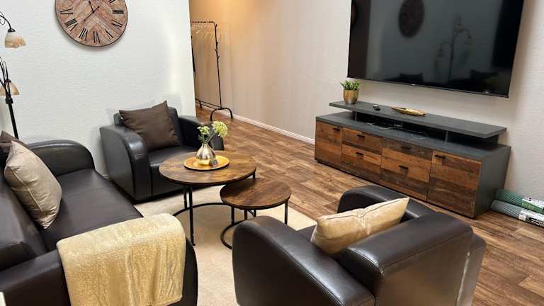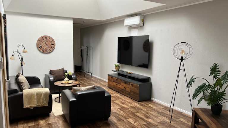Die Ferienwohnung umfasst 2 Schlafzimmer, ein Wohnzimmer und eine voll ausgestattete Küche, die mit einem Kühlschrank und einer Kaffeemaschine ausgestattet ist. Zudem steht ein Badezimmer mit Dusche und kostenlosen Pflegeprodukten zur Verfügung. Handtücher und Bettwäsche werden bereitgestellt.