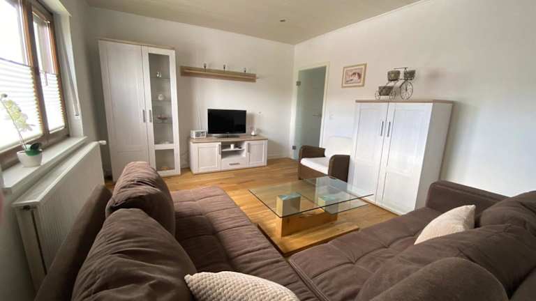 Das Apartment im Apartmenthaus RuheZeit verfügt über eine Terrasse und bietet einen schönen Blick auf den Garten. Es ist mit einem komfortablen Sitzbereich, einem Flachbild-Sat-TV und einer voll ausgestatteten Küche ausgestattet. Die Küche verfügt über einen Kühlschrank, einen Geschirrspüler, einen Backofen, eine Mikrowelle, ein Kochfeld, eine Kaffeemaschine und einen Wasserkocher. Das private Badezimmer ist mit einer Dusche und kostenlosen Pflegeprodukten ausgestattet. WLAN steht Ihnen in allen Bereichen des Apartments kostenfrei zur Verfügung.