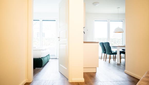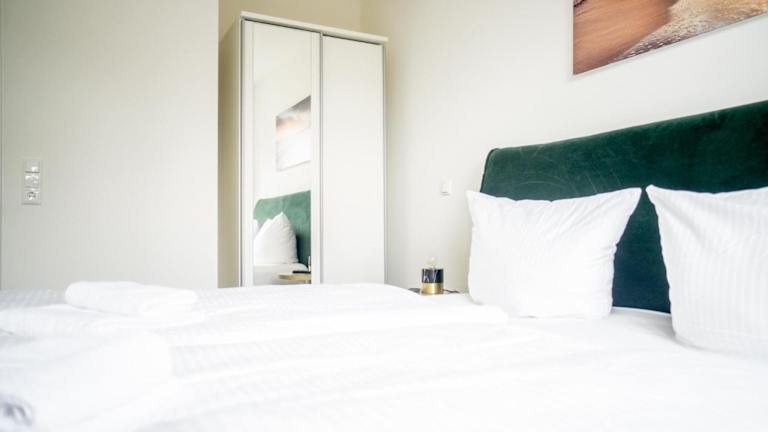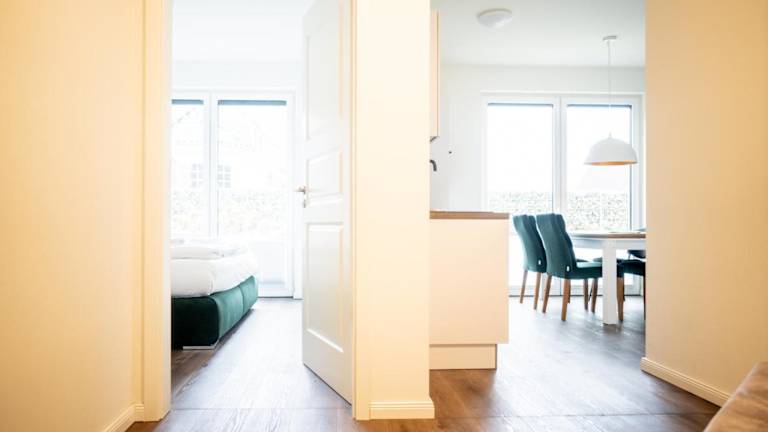 Die Ferienwohnung im Erdgeschoss verfügt über zwei Schlafzimmer, einen Fernseher mit Satellitenkanälen und eine voll ausgestattete Küche, die einen Kühlschrank und einen Geschirrspüler beinhaltet. Handtücher und Bettwäsche sind in der Unterkunft vorhanden.