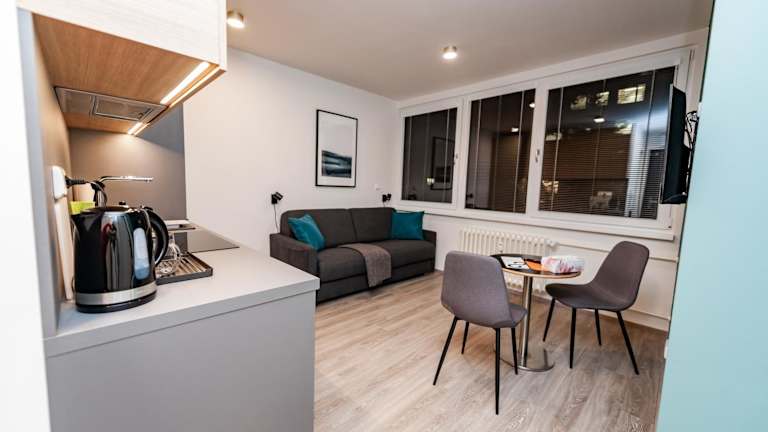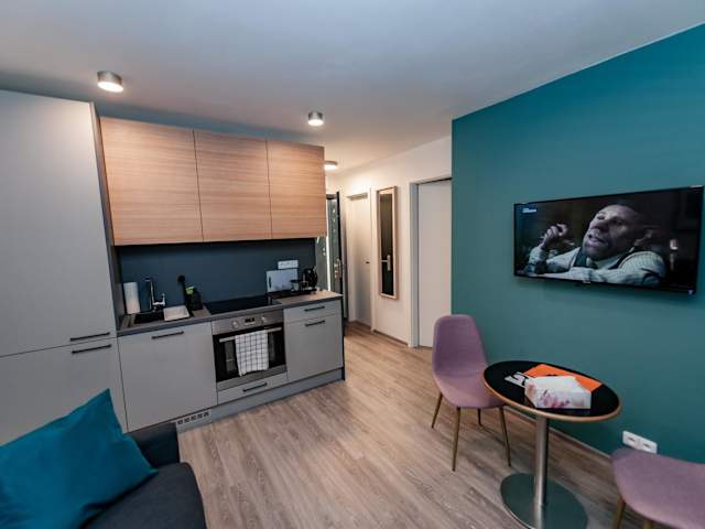 Die Apartments bieten komfortable Wohneinheiten mit Parkettboden und einer voll ausgestatteten Küche, die Ihnen die Möglichkeit bietet, Ihre eigenen Mahlzeiten zuzubereiten. Jedes Apartment verfügt über einen Flachbild-Kabel-TV und ein eigenes Bad mit Dusche und kostenlosen Pflegeprodukten. Zur weiteren Ausstattung gehören ein Kühlschrank, ein Backofen, eine Mikrowelle, ein Kochfeld und ein Wasserkocher.