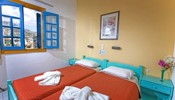 The traditional complex Afroditi Apartments welcomes you to its carefully designed rooms and promises a wonderful stay in a peaceful environment, with a breathtaking view to the beach of Makri Gialos, in Sitia, Crete. The complex is an excellent choice for family holidays, as the nearby beach is sandy with shallow waters and also for couples or larger groups, offering accommodation in 12 rooms, [7 studios and 5 apartments], all with a private balcony or veranda and view to the sea, the garden or the pool.