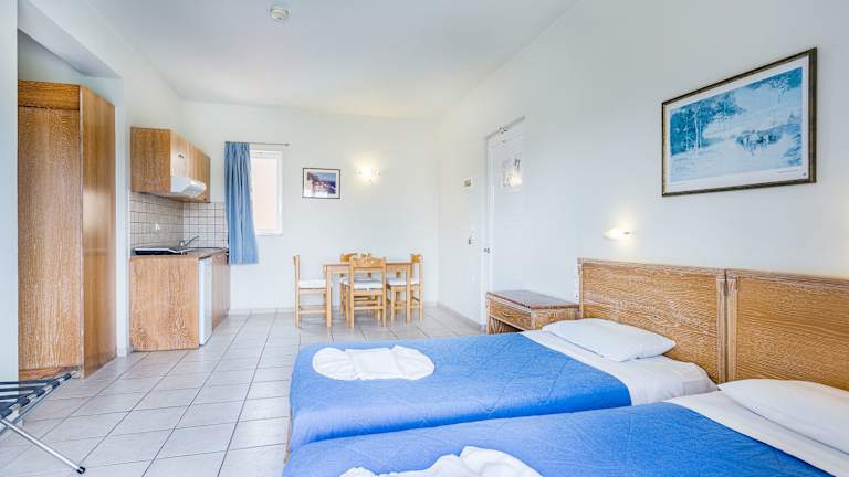 Die Studios und Apartments im Alonia Hotel sind schlicht und komfortabel eingerichtet. Jede Unterkunft verfügt über einen privaten Balkon mit Blick auf das kretische Meer oder den Hotelpool. Zur Ausstattung gehören eine Kochnische mit Kochplatten, ein Minikühlschrank und ein Wasserkocher. Außerdem sind alle Unterkünfte klimatisiert und verfügen über einen Essbereich, Sat-TV, einen Safe und einen Haartrockner.