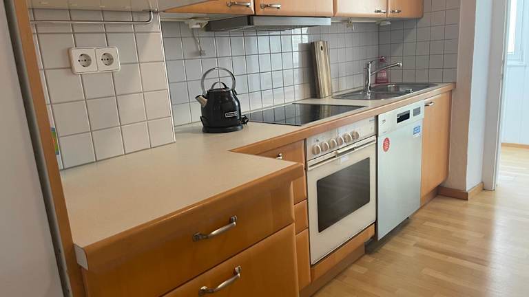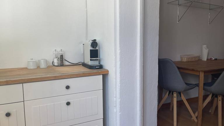 Die Apartments sind mit einer komplett ausgestatteten Küche ausgestattet, die einen Kühlschrank, Geschirrspüler, einen Ofen, eine Herdplatte, eine Kaffeemaschine und einen Wasserkocher umfasst.