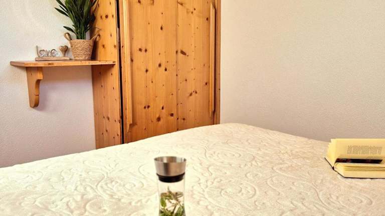 Die Ferienwohnung verfügt über zwei Schlafzimmer, ein Badezimmer, einen Essbereich sowie eine voll ausgestattete Küche. Weitere Annehmlichkeiten umfassen Bettwäsche, Handtücher, einen Flachbild-TV mit Satellitenkanälen und eine Terrasse mit Blick auf die Berge. Darüber hinaus sind Grillmöglichkeiten vorhanden.