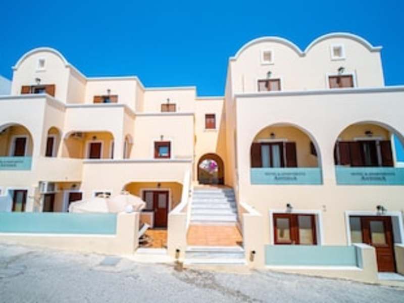 Das Antonia Apartments ist eine ideale Unterkunft für Ihren Aufenthalt in Fira, Santorin. Nur wenige Schritte vom Hauptplatz entfernt, bietet es klimatisierte Zimmer und Apartments mit Balkon sowie einen Pool und kostenloses WLAN. Die geschmackvoll eingerichteten Unterkünfte bieten allen Komfort, den Sie benötigen, darunter LCD-TV, Safe und Haartrockner. Einige Apartments verfügen auch über eine gut ausgestattete Küchenzeile. Die Lage des Antonia ist ideal, da es sich nur wenige Gehminuten von einer Bushaltestelle befindet, von der aus Sie bequem zu den wichtigsten Sehenswürdigkeiten von Santorin gelangen. Der Flughafen der Insel ist nur 10 Autominuten entfernt und kostenfreie Parkplätze stehen in der Nähe zur Verfügung.