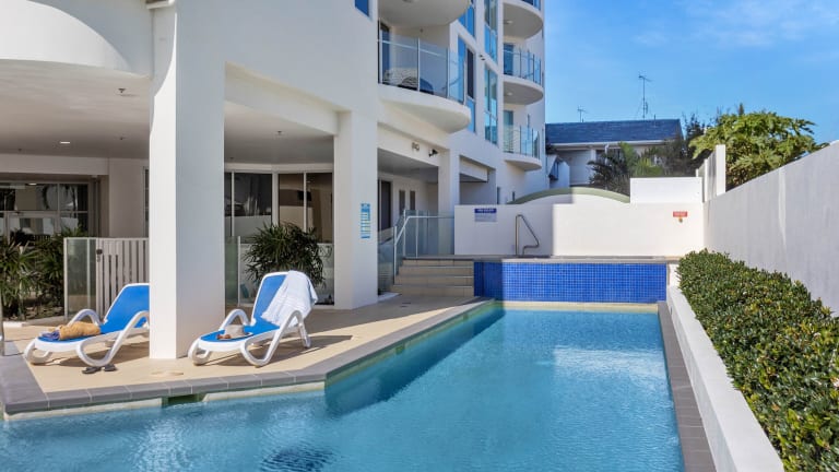Das Aqua Vista Resort in Maroochydore bietet luxuriöse Apartments nur wenige Gehminuten von den weißen Sandstränden entfernt. Genießen Sie den Komfort der komplett ausgestatteten Küche, des eigenen Balkons mit Whirlpool und der atemberaubenden Aussicht. Entspannen Sie im Day Spa oder im Außenpool und nutzen Sie die Annehmlichkeiten wie das Fitnesscenter und den Grillbereich. Das Resort bietet auch kostenlose Parkplätze, Wäschemöglichkeiten und einen Tourenschalter. Die Lage an der Mündung des Maroochy River in den Pazifik ermöglicht Ausflüge zu den umliegenden Orten wie Mooloolaba, Noosa und Caloundra.
