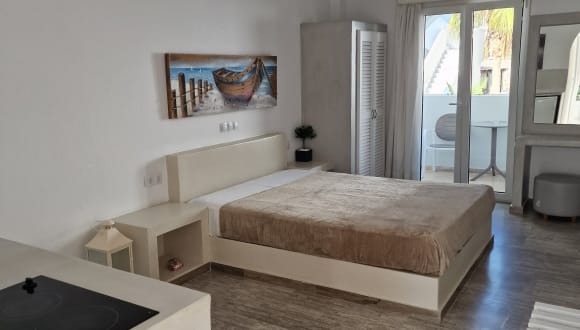 Das Argiris Studios in Kamari ist die ideale Wahl für einen entspannten Urlaub am vulkanischen schwarzen Strand. Mit seiner zentralen Lage, nur wenige Schritte vom Strand und der Promenade entfernt, bietet es komfortable klimatisierte Studios mit kostenfreiem WLAN und einer eigenen Küchenzeile. Die freundlichen Mitarbeiter stehen Ihnen jederzeit zur Verfügung und helfen Ihnen gerne bei der Organisation von Ausflügen und der Anmietung von Fahrzeugen. In der Nähe finden Sie auch eine Bushaltestelle, von der aus Sie bequem die anderen Strände der Insel und den lebhaften Ort Fira erreichen können.