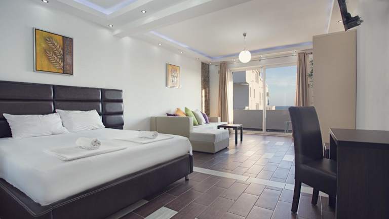 Die Studios in den Apartments Atlantis sind klimatisiert und bieten eine komfortable Unterkunft. Jedes Studio verfügt über Sat- und Kabel-TV, einen Minikühlschrank, eine Küchenzeile, einen Safe und einen großen Balkon. Das private Badezimmer ist mit einer Dusche ausgestattet. Kostenloses WLAN ist in allen Studios verfügbar.