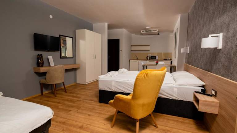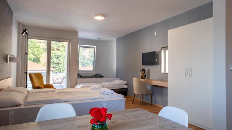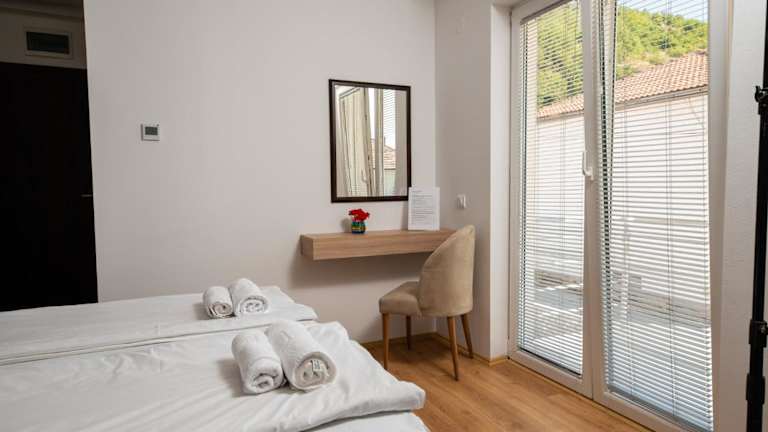 Die Zimmer in Apartments Bashoski sind mit einem Kleiderschrank, einem Flachbild-TV, einem eigenen Badezimmer, Balkon, Bettwäsche und Handtüchern ausgestattet. Einige Zimmer bieten einen Blick auf die Berge und verfügen über einen eigenen Balkon. Sie sind klimatisiert und mit modernen Annehmlichkeiten ausgestattet.