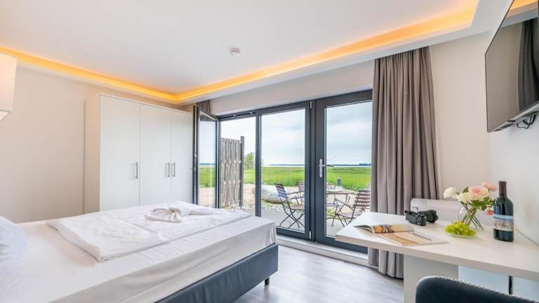 Apartments Boddenblick bietet Übernachtungsmöglichkeiten in einem Ferienhaus mit Klimaanlage. Die Unterkunft ist als Nichtraucherunterkunft konzipiert und befasst sich mit der Bereitstellung einer angenehmen Atmosphäre für die Gäste. Die Buchung erfordert die vollständige Bezahlung im Voraus sowie eine vorherige Mitteilung der voraussichtlichen Ankunftszeit.