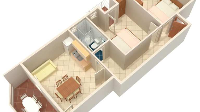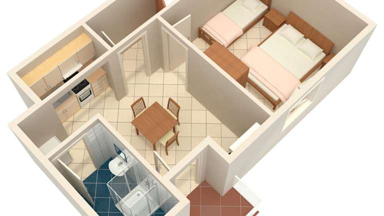Jede Wohneinheit ist mit einer Klimaanlage, einem eigenen Badezimmer sowie einer voll ausgestatteten Küche mit Kühlschrank, Ofen und Herdplatte ausgestattet. Einige Einheiten bieten zudem eine Terrasse und/oder einen Balkon mit Meerblick.