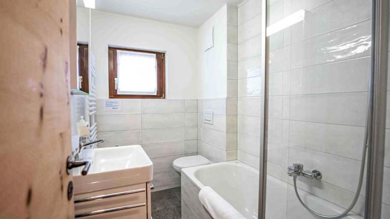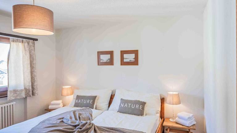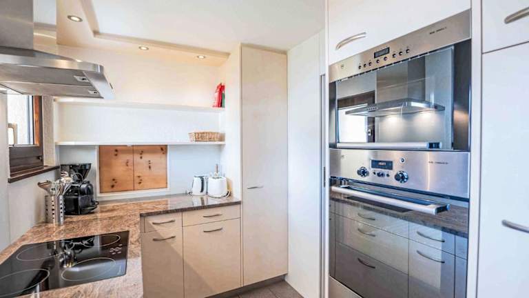 Die Ferienwohnung verfügt über einen Balkon mit Bergblick, einen Fernseher und eine gut ausgestattete Küche mit Kühlschrank, Geschirrspüler und Ofen. Zudem sind zwei Badezimmer mit Dusche und Haartrockner vorhanden.