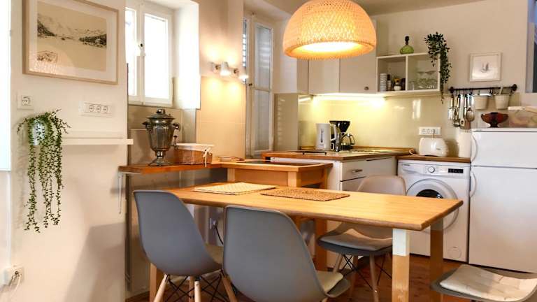 Die Apartments im Doklestic sind traditionell eingerichtet und verbinden antike Möbel mit modernen Annehmlichkeiten. Die hohen Decken verleihen den Räumen ein großzügiges und einladendes Ambiente. Jedes Apartment verfügt über einen Flachbild-TV und eine voll ausgestattete Küche mit Essbereich, Kühlschrank und Wasserkocher. Die Badezimmer sind mit einer Dusche, einem Haartrockner und einer Waschmaschine ausgestattet. Bitte beachten Sie, dass sich die Apartments auf der 3. Etage befinden und nur über Treppen erreichbar sind.