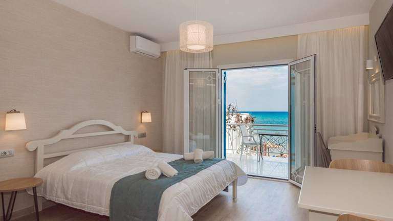 Die Studios und Apartments im Filoxenia Beach sind hell und geschmackvoll eingerichtet. Sie verfügen über einen Balkon mit Blick auf das Meer. Die Unterkünfte sind mit traditionellen Holzmöbeln ausgestattet und bieten eine Küchenzeile mit einem Essbereich, einem Kühlschrank und einem kleinen Elektro-Backofen. Zur weiteren Ausstattung gehören Klimaanlage, ein Safe und ein Flachbild-Sat-TV. Das private Badezimmer ist mit einer Dusche oder Badewanne und einem Haartrockner ausgestattet.