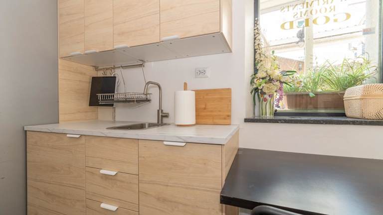 Die Zimmer im Rooms Gold sind gemütlich eingerichtet und verfügen über eine Klimaanlage und Heizung. Ein komfortables Doppelbett sorgt für einen erholsamen Schlaf. Jedes Zimmer verfügt über eine Kochnische mit einem Minikühlschrank und einem Herd. Zur Ausstattung gehört auch ein TV-Gerät mit Satelliten-/Kabelempfang und ein Radio. Die Badezimmer sind mit einer Dusche ausgestattet. Kostenloses WLAN ist in allen Zimmern verfügbar.