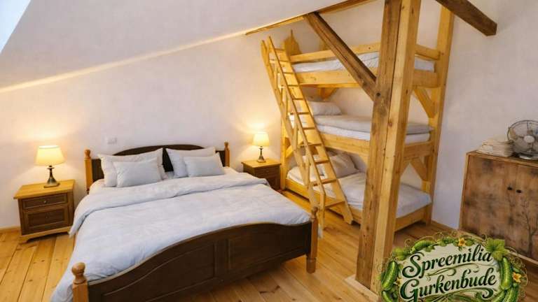 Das Spreewald Spreemilia Gurkenbude in Lübbenau bietet geräumige Apartments im charmanten Landhausstil. Die ruhige Lage und die Nähe zum Bahnhof machen es zu einem idealen Ausgangspunkt für Ausflüge in die Umgebung. Die gut ausgestatteten Apartments bieten Ihnen allen Komfort, den Sie für einen angenehmen Aufenthalt benötigen. Genießen Sie die Möglichkeit, Ihre eigenen Mahlzeiten in der voll ausgestatteten Küche zuzubereiten und erkunden Sie die schöne Umgebung beim Wandern, Radfahren oder Kanufahren.